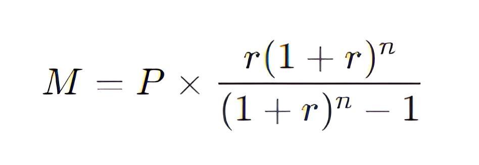M是每月還款金額、P是貸款總金額(扣除自備頭期款後)、r是月利率(年利率除以12)、n是總還款期數(以月為單位)。